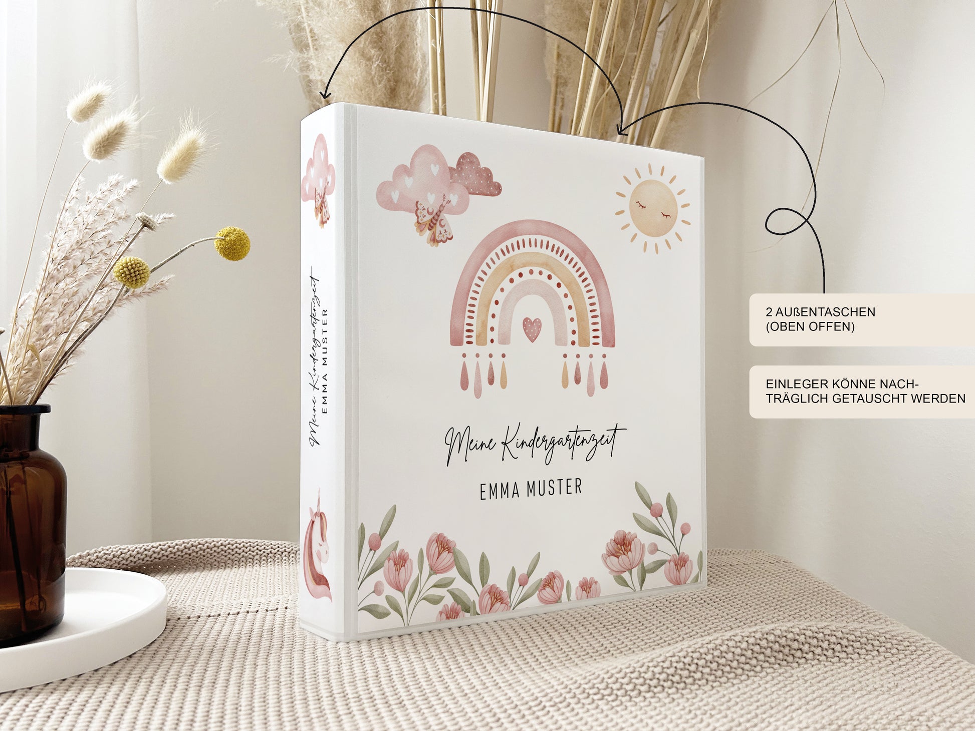 Unser Kindergarten Ordner "Regenbogen wird mit dem Namen eures Kindes personalisiert. Der Ordner kann für Kindergarten, Kita, Schule, Krippe oder andere Gelegenheiten genutzt werden. In dieser Sammelmappe/Ringordner können all die Kunstwerke, Zeugnisse und Arbeitsblätter deines Kindes aufbewahrt werden.