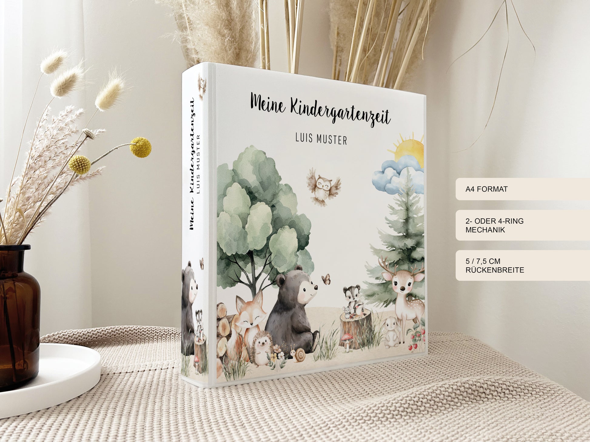 Kindergartenordner "Woodland" personalisiert / Mappe Krippe Schule oder Kita