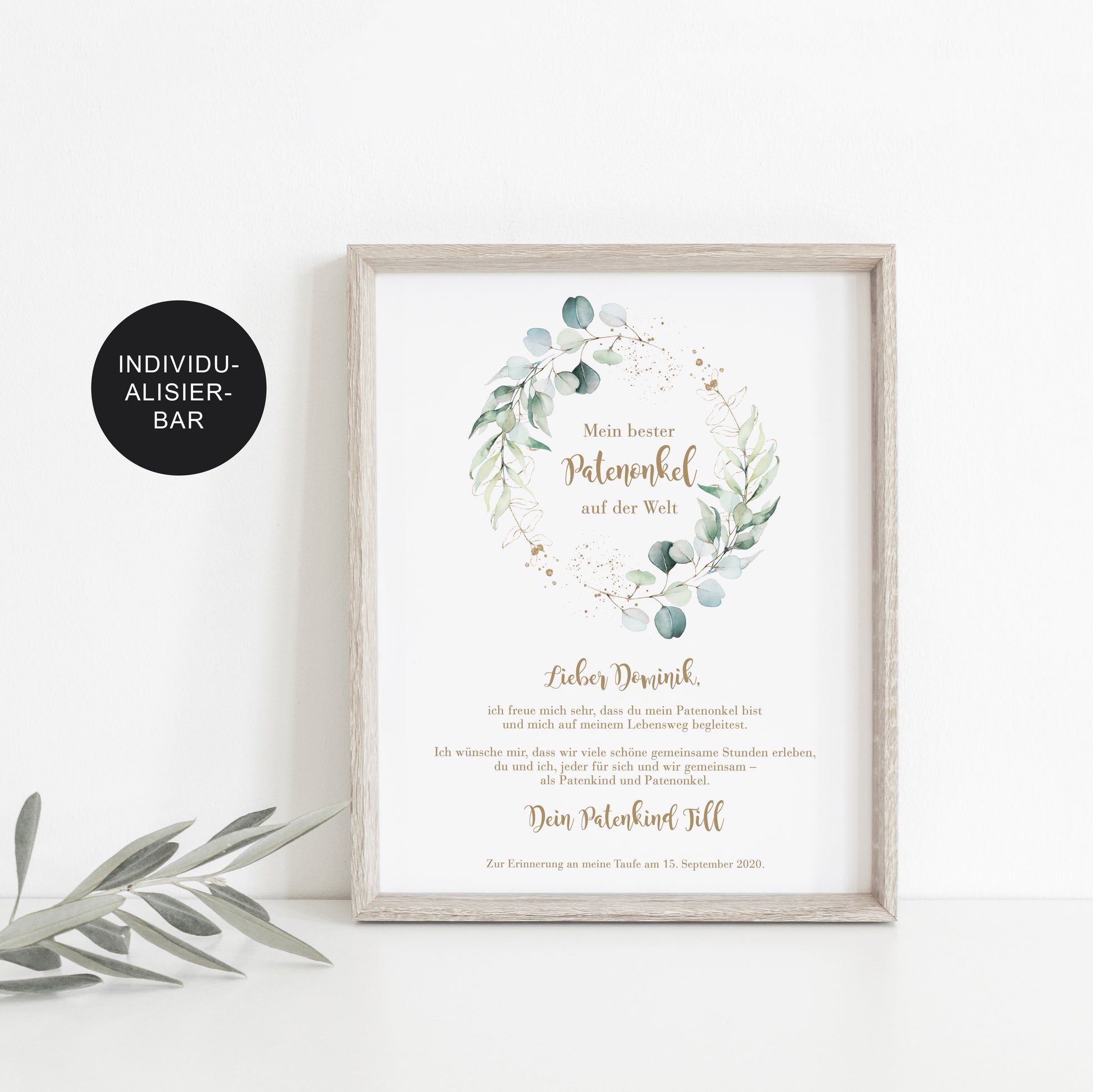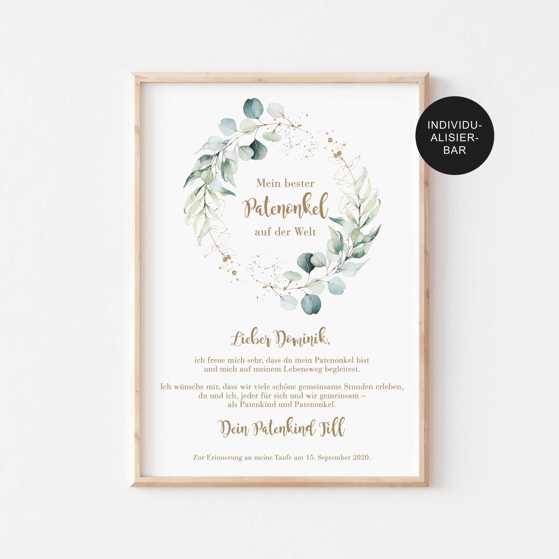 Patenbrief Eukalyptus personalisiert an die Patentante oder Patenonkel