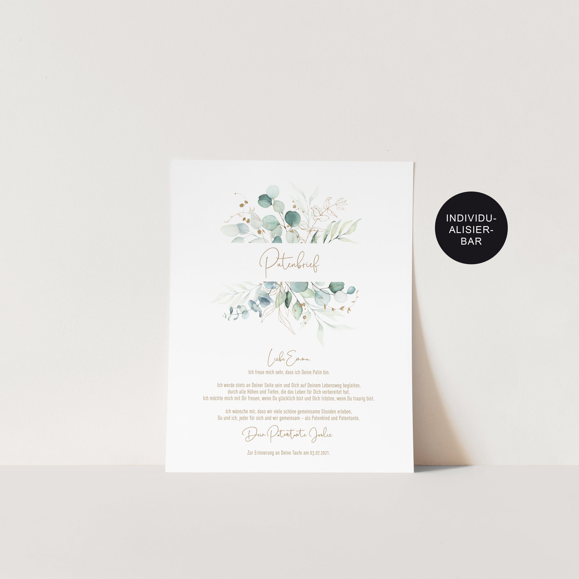 Patenbrief Eukalyptus personalisiert für das Patenkind zur Taufe als Geschenk