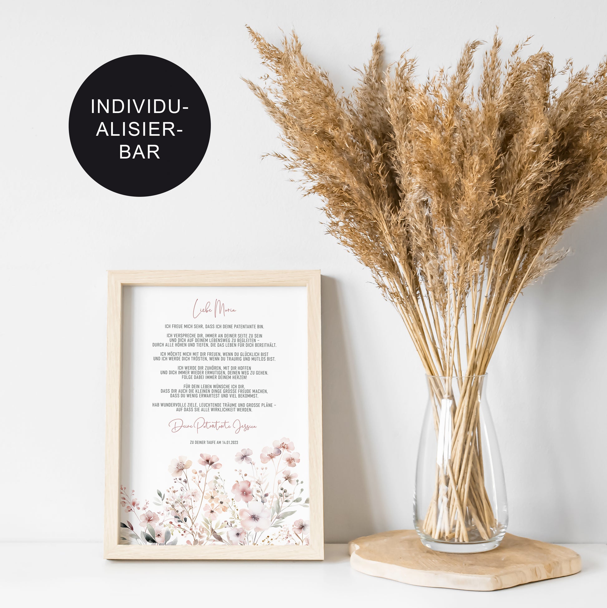 Patenbrief "Flowers" personalisiert – Geschenk zur Taufe für Mädchen