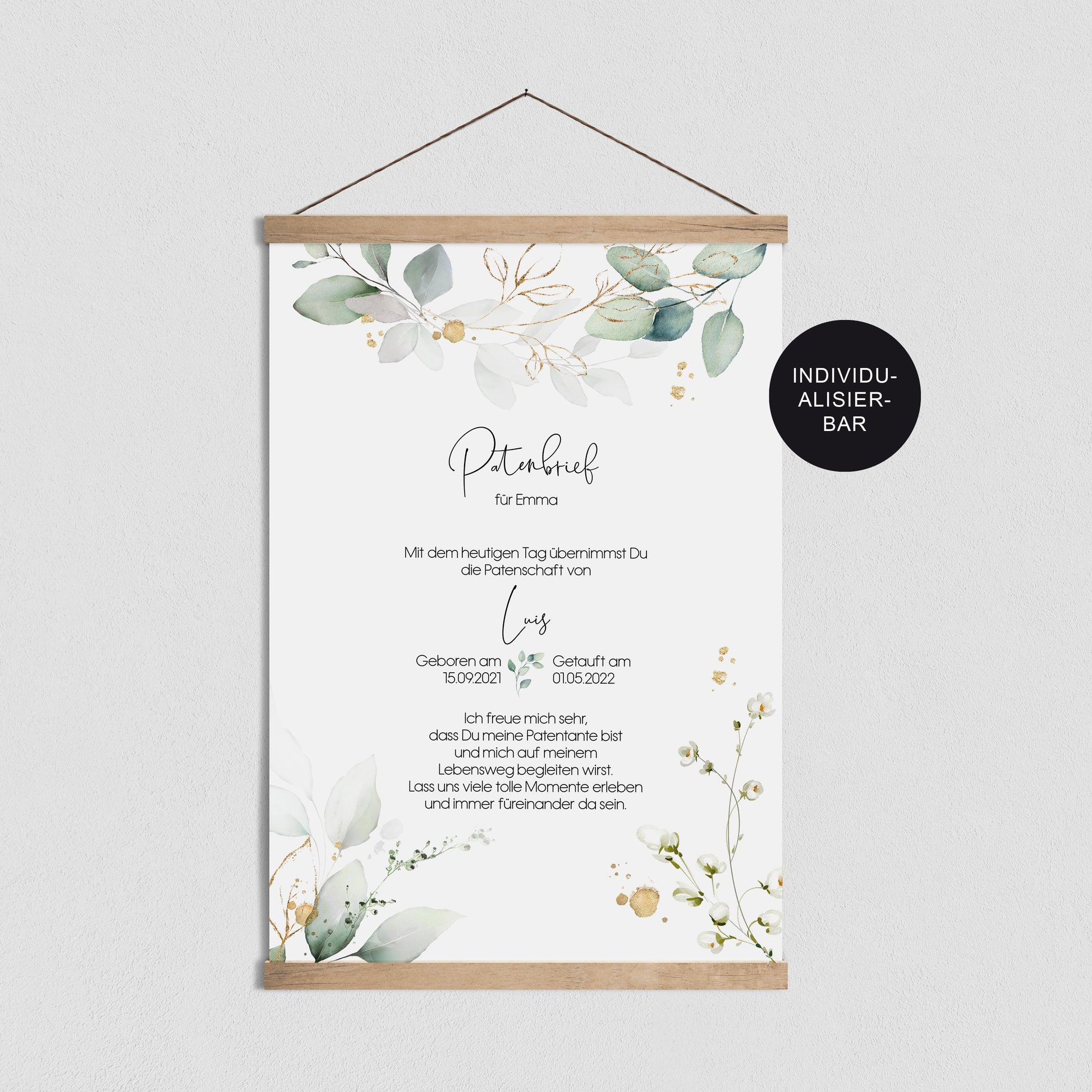 Patenbrief Taufe Eukalyptus personalisiert – Geschenk Patentante oder Patenonkel