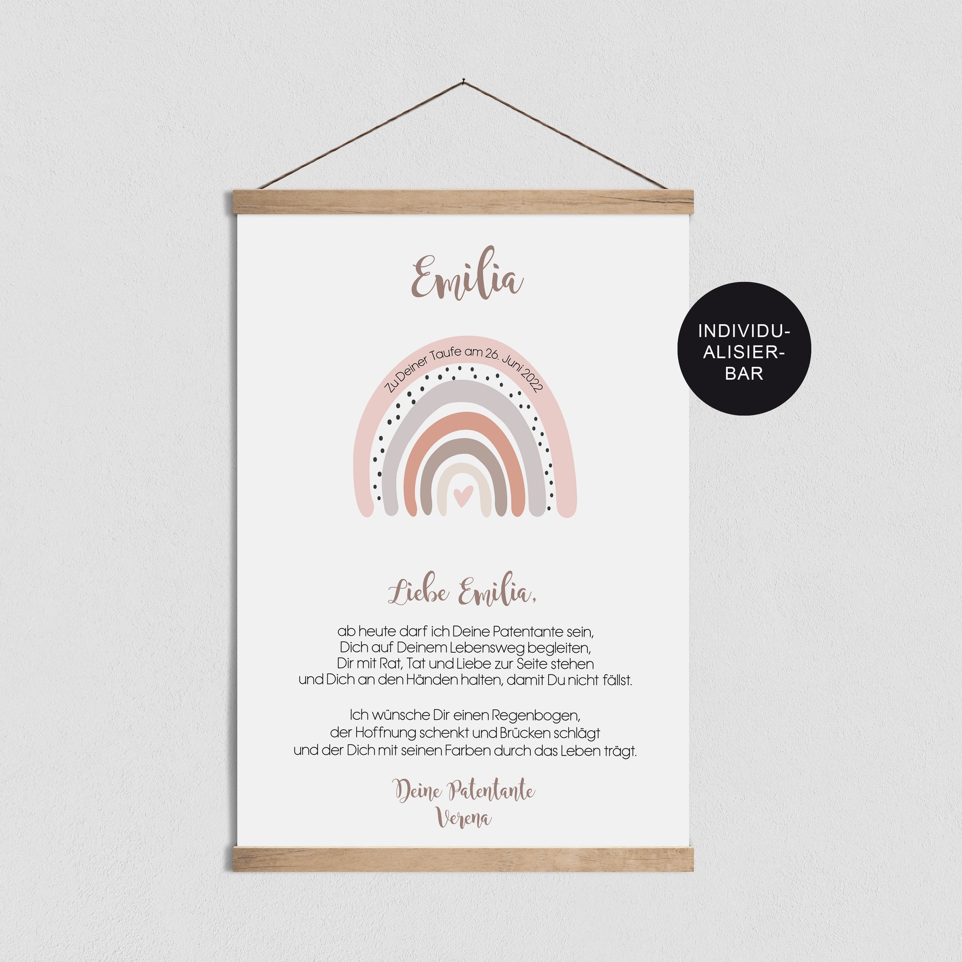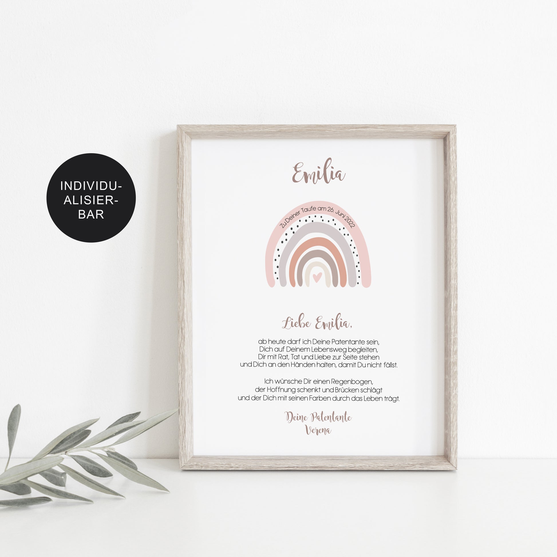 Patenbrief Taufe mit Regenbogen – Geschenk Patenkind – Mädchen