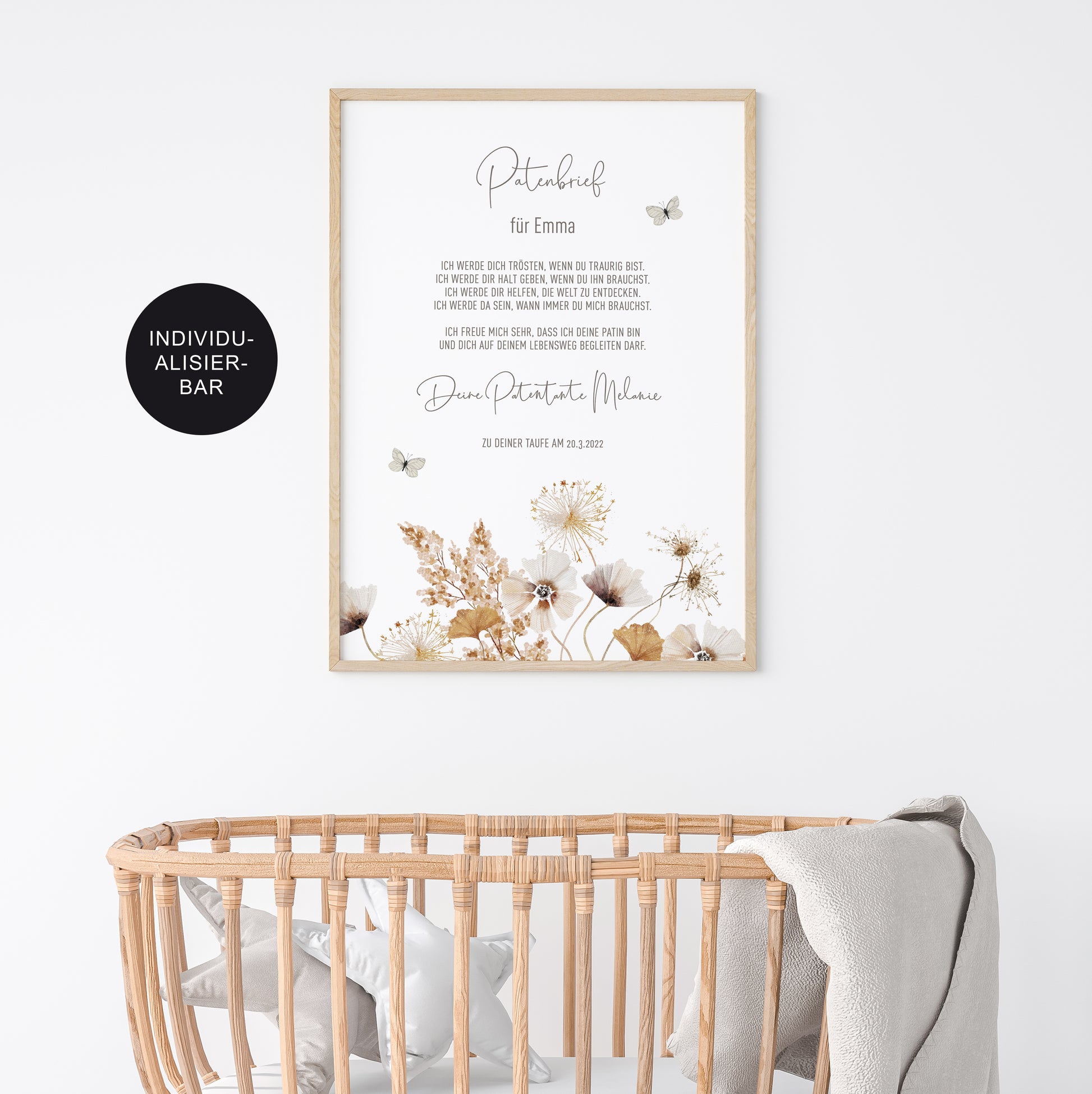 Patenbrief Taufe Patenkind Wildblumen personalisiert – Geschenk Taufe
