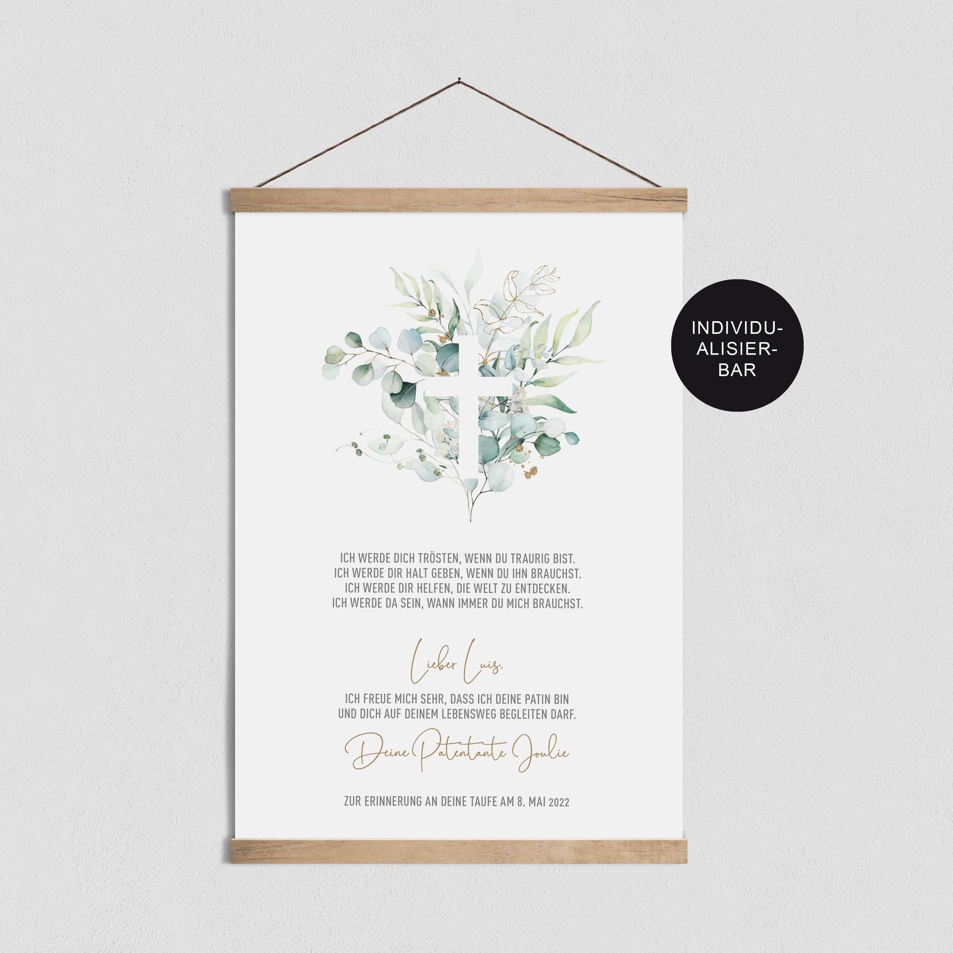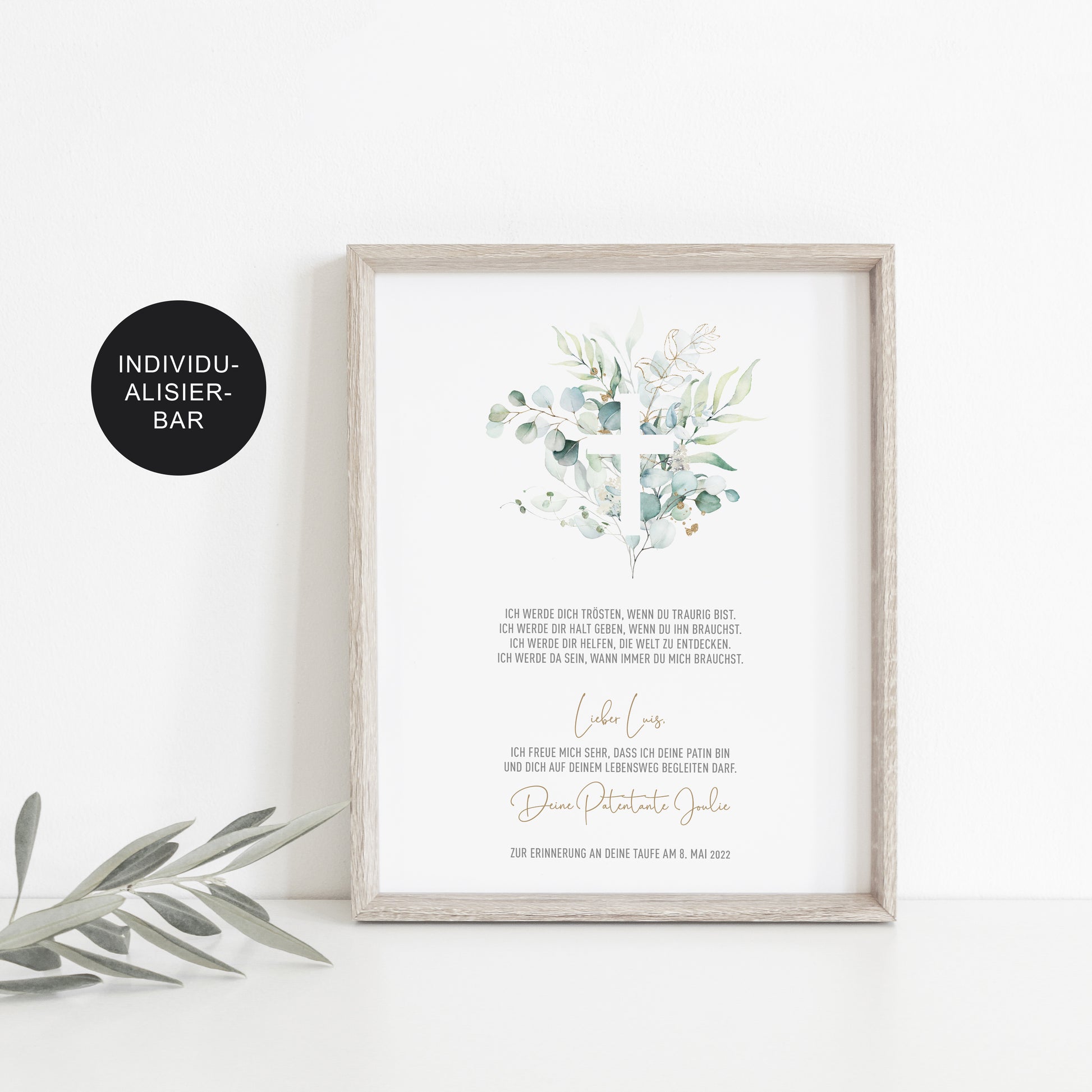 Patenbrief Taufe personalisiert Eukalyptus – Geschenk Firmung