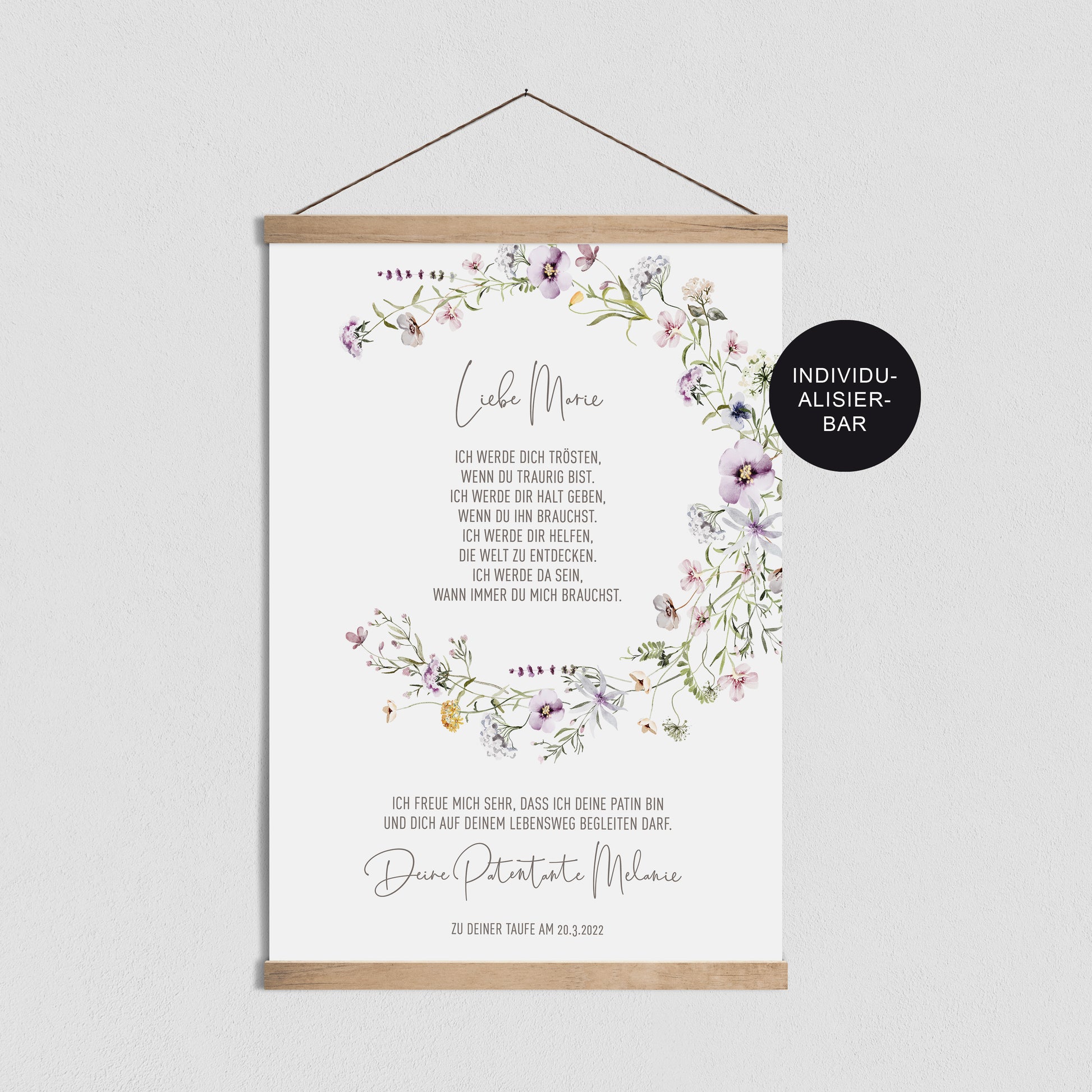 Patenbrief Wiesenblumenkranz personalisiert – Geschenk Taufe Firmung