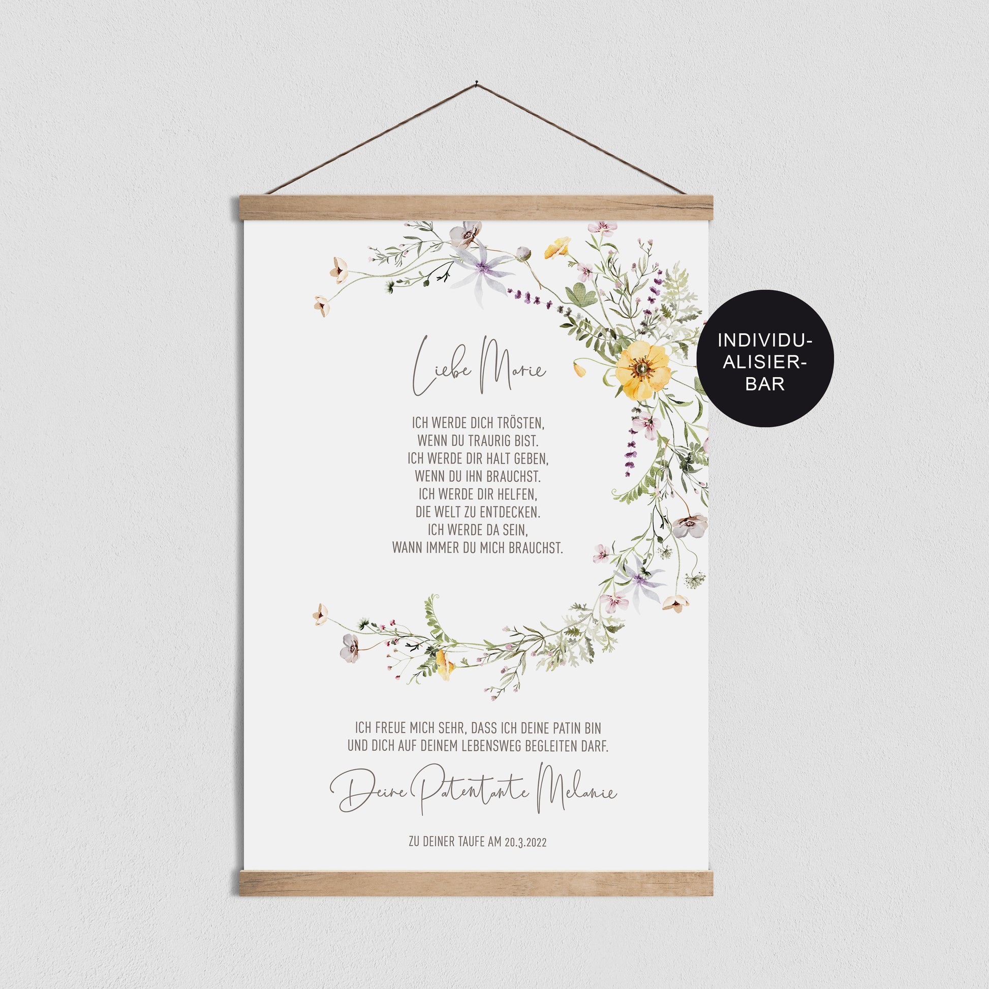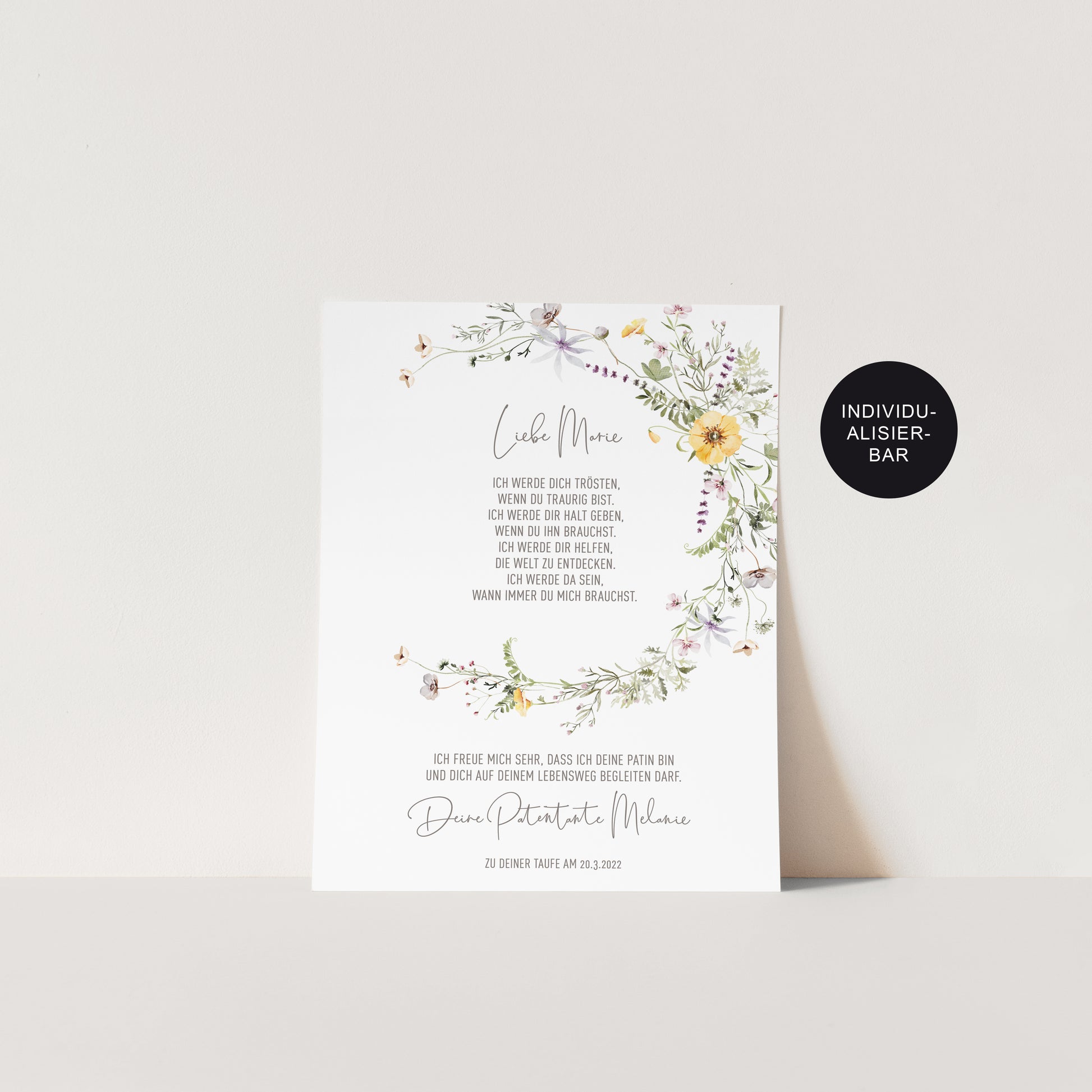 Patenurkunde Wiesenblumen personalisiert – Geschenk Taufe Firmung