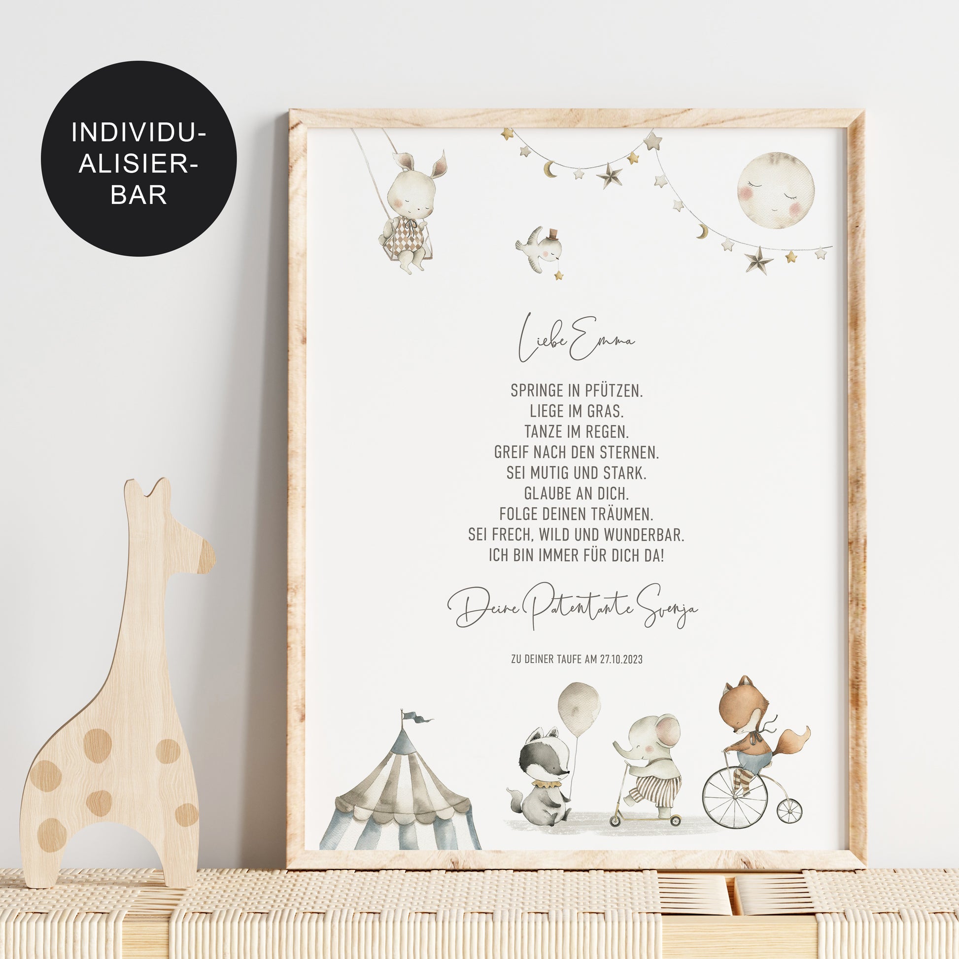 Patenbrief "Zirkus" personalisiert – Geschenk Taufe für Mädchen und Jungen