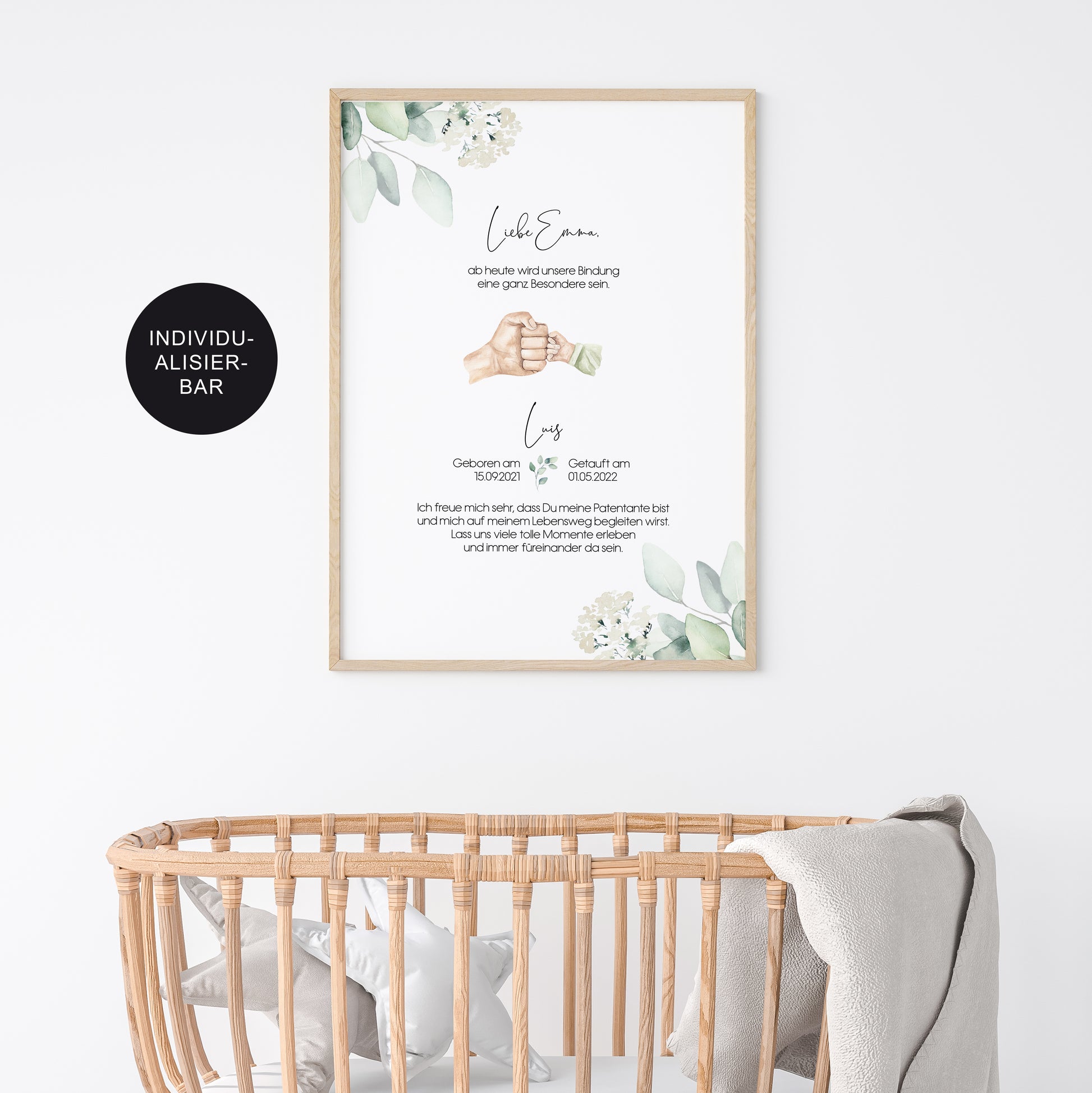 Du möchtest der zukünftigen Patentante oder dem Patenonkel zur Taufe eine Geschenk in Form eines Patenbriefes überreichen? Diese Patenurkunde für die Paten, wird mit deinen Daten personalisiert und somit zu einer wunderbaren Erinnerung an die Taufe und das Taufversprechen.