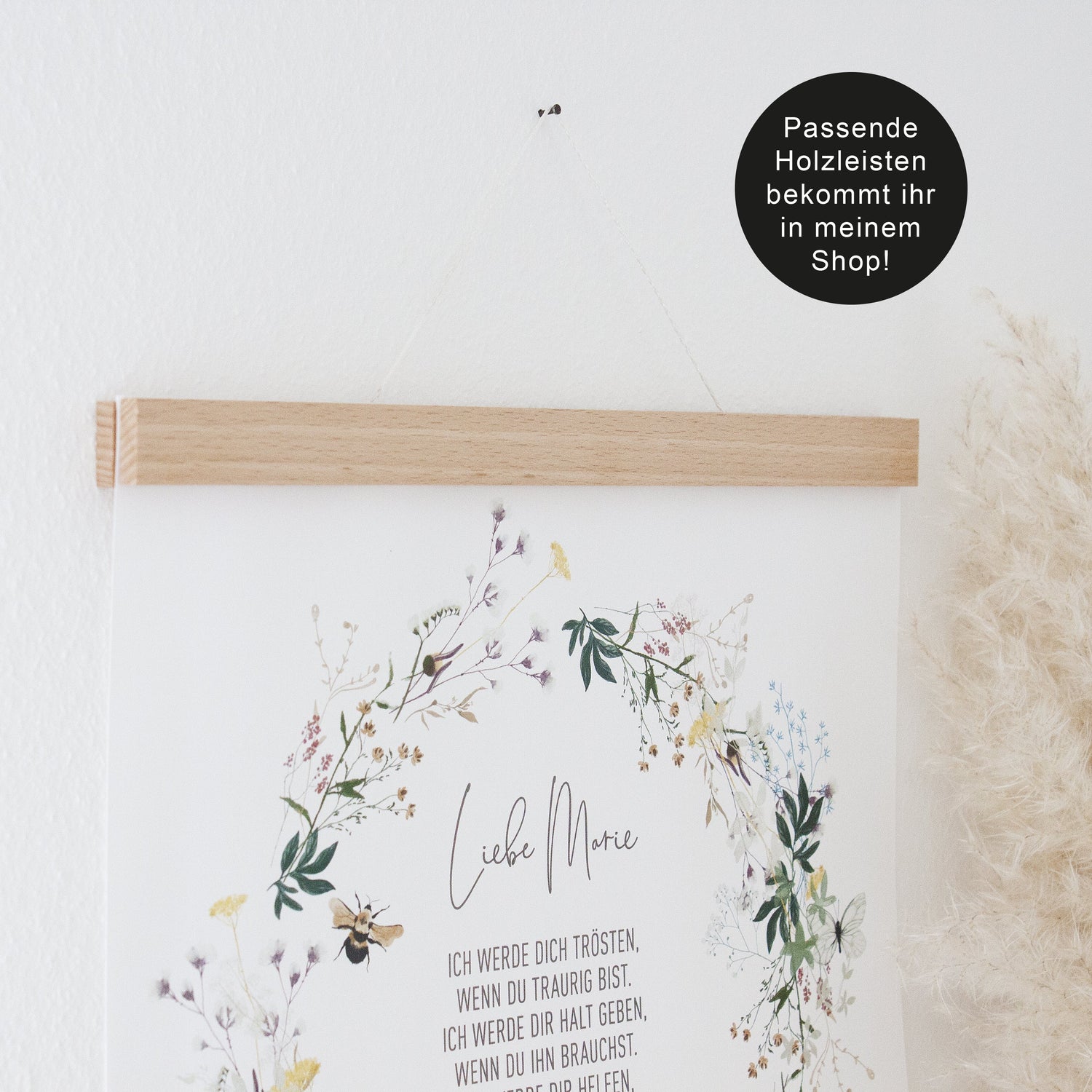 Passend zu unseren Patenbriefen bekommst du unsere magnetischen Posterleisten aus Echtholz. Sie gibt es in den Holzarten Eiche und Buche.